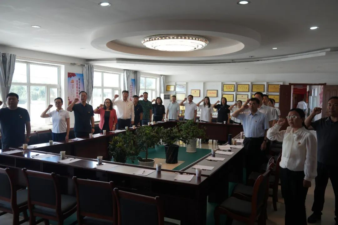 在庄严的党旗下,全体党员面向鲜红的旗帜,紧握右拳,共同重温入党誓词。誓言铿锵有力,不仅是对初心的回望,更是对信仰的坚定宣誓,让每一位党员的心灵再次接受了深刻的洗礼,深切体会到信仰与信念的磅礴力量。