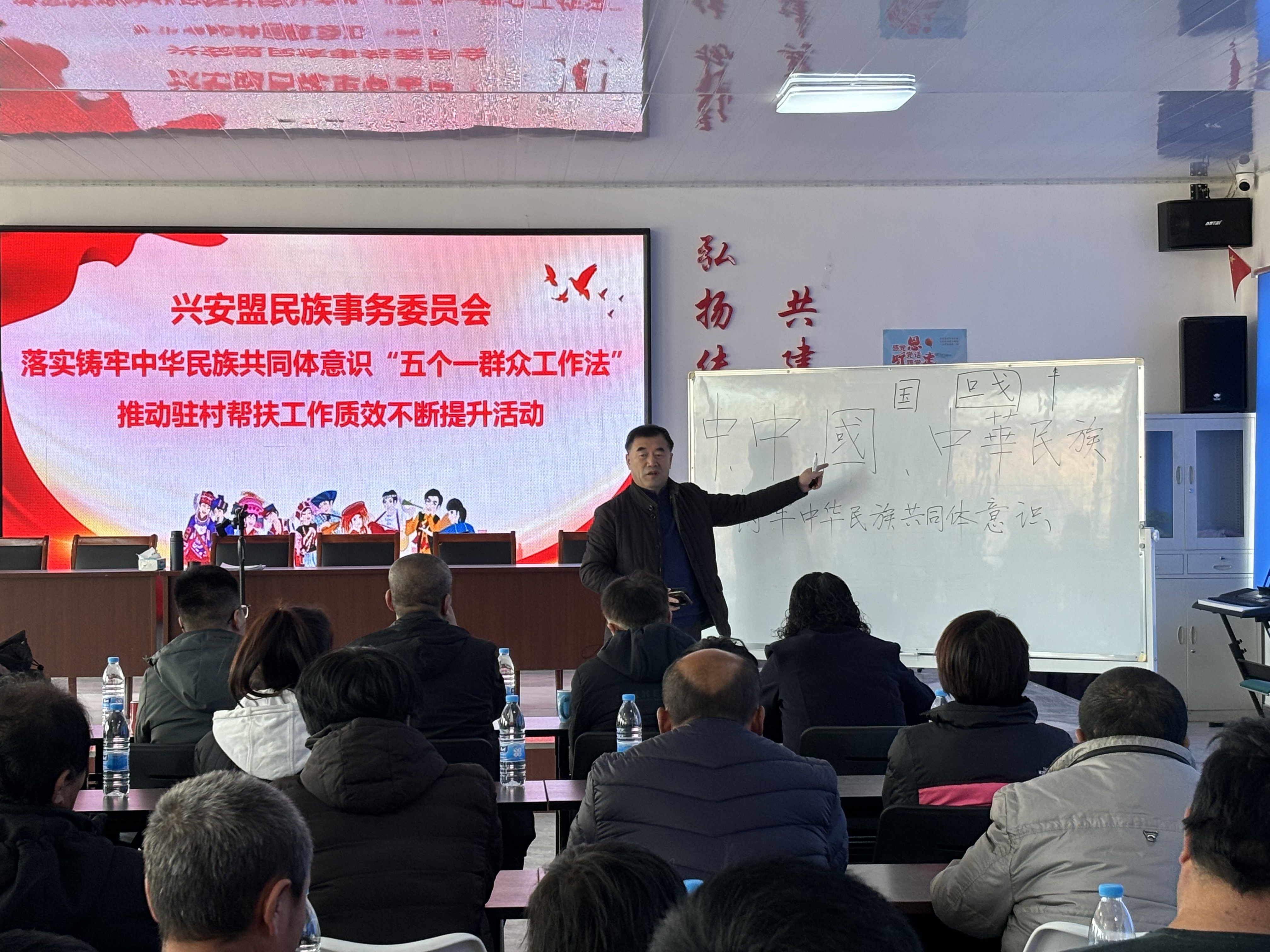 为有效落实“五个一”群众工作法,推动铸牢中华民族共同体意识在基层走深走实,12月12日,盟委统战部副部长、盟民委党组书记、主任马继承一行深入帮扶点科右中旗额木庭高勒苏木查干宝浩嘎查开展引领共学和增收致富宣讲活动。