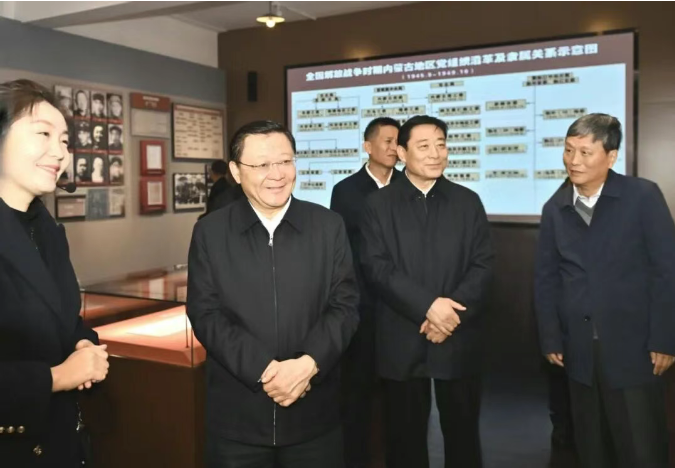 在乌兰浩特市,王伟中来到五一会址和内蒙古党委办公旧址,认真听取讲解,仔细观看展陈,了解革命遗址遗存保护利用和红色文化传承情况。他说,习近平总书记多次强调“内蒙古自治区作为中国共产党领导下建立的第一个省级少数民族自治区”,“具有民族团结的光荣传统”。没有中国共产党就没有内蒙古自治区,就没有全区各族人民今天的美好生活。全区各级要不折不扣贯彻落实党中央决策部署,以实际行动坚定拥护“两个确立”,坚决做到“两个维护”。要矢志不渝感党恩、听党话、跟党走,全面贯彻铸牢中华民族共同体意识主线,全方位建设“模范自治区”,继续发扬民族团结的光荣传统,共同守卫祖国边疆,共同创造美好生活,建设亮丽内蒙古,共圆伟大中国梦。要周密组织部署,做好嘎查村、社区“两委”换届,切实建强基层一线组织力量和工作力量,更好凝聚服务群众。