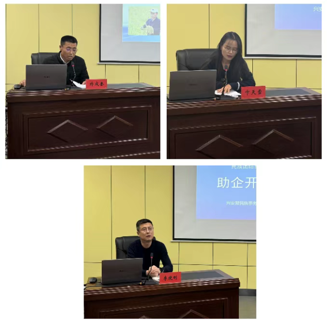 助企发展 解读惠企政策。盟民委民族团结进步促进科负责人韩永军围绕民贸民品企业相关政策、申报认定办法以及企业开展民族团结进步创建指标等进行详细解读。